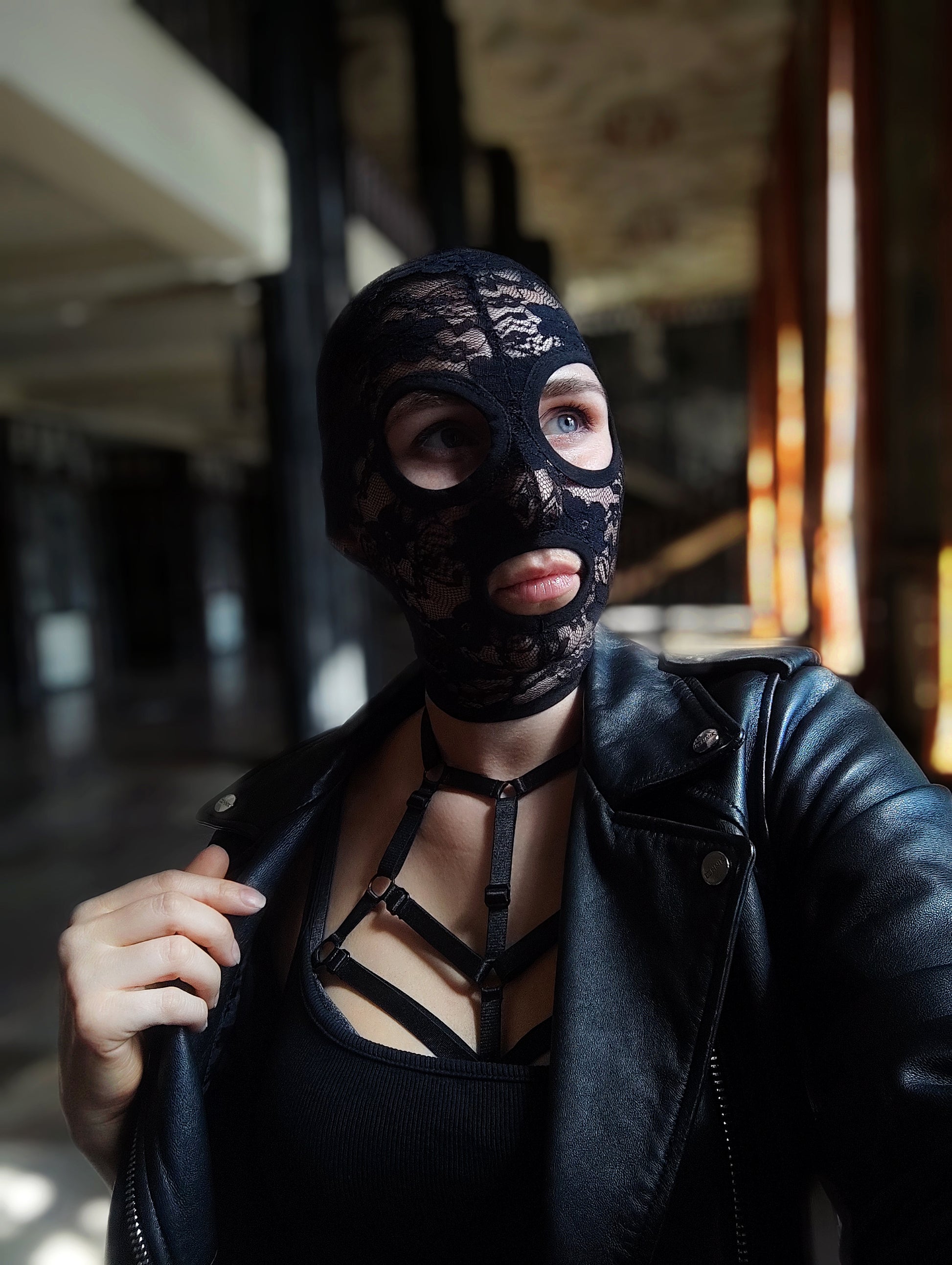 Woman lace mask for pole dance and twerk.Rave mask for party, festival and cosplay.Gothic harness mask for women.Guipure mask for carnival.