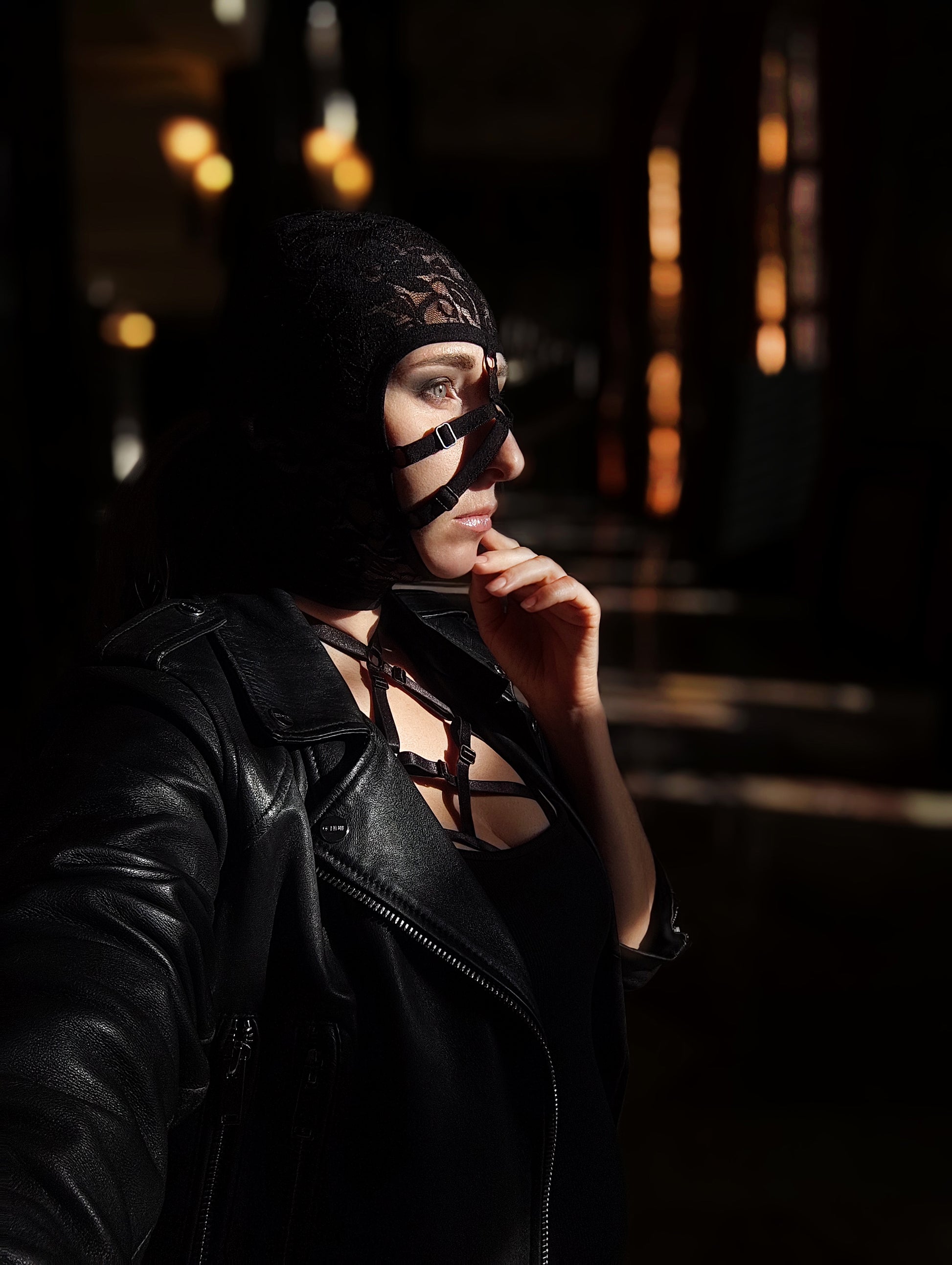 Woman lace mask for pole dance.Rave mask for party, festival and cosplay.Gothic harness mask for women.Guipure mask for carnival.Balaclava.
